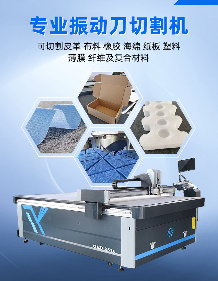 TPU材料因其独特的柔软度和弹性,在切割时需要特别的处理以确保切割的精度和边缘的光滑度。振动刀切割机在处理橡胶材料时,展现出其独特的优势,这款振动刀切割机,核心在于其高频振动刀头设计。通过每分钟数万次的微小振动,减少切割阻力,即使面对材料的弹性回复力,也能轻松穿透,实现干净利落的切割效果,有效避免材料变形和撕裂。