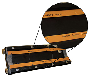 吸墨装置吸收了凹印的特点,采用了柔印刮刀新技术,从而进一步提高了印刷质量。用柔印刮刀代替墨斗辊和网纹辊,完成油墨转移和油墨量控制的功能。油墨路径较短,即网纹辊直接浸泡在油墨槽中或油墨喷在网纹辊上,然后其表面多余的油墨被柔印刮刀刮掉,然后转移到印版上,最后转移到承印物上。