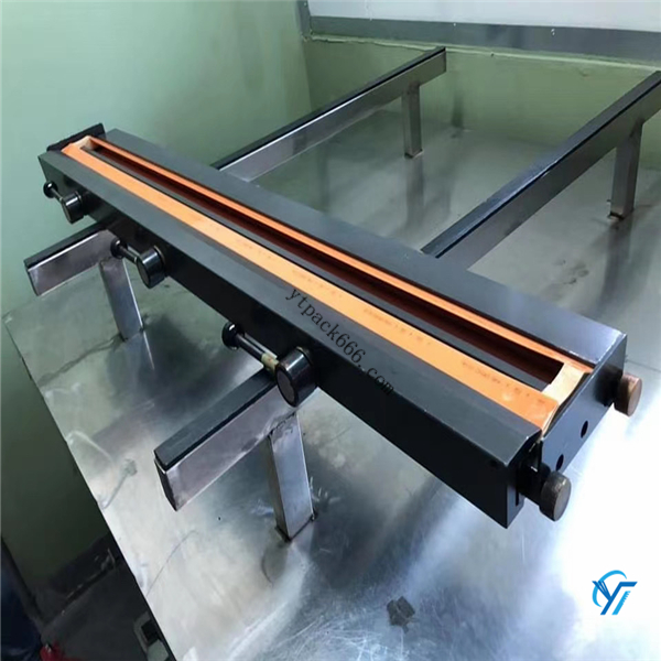 5、油墨刮刀夹板装置:刮刀夹板装置由上夹板、下夹板油墨刮刀、刮刀垫板和刮刀片组成,可以方便地调节其刮刀的伸出量。